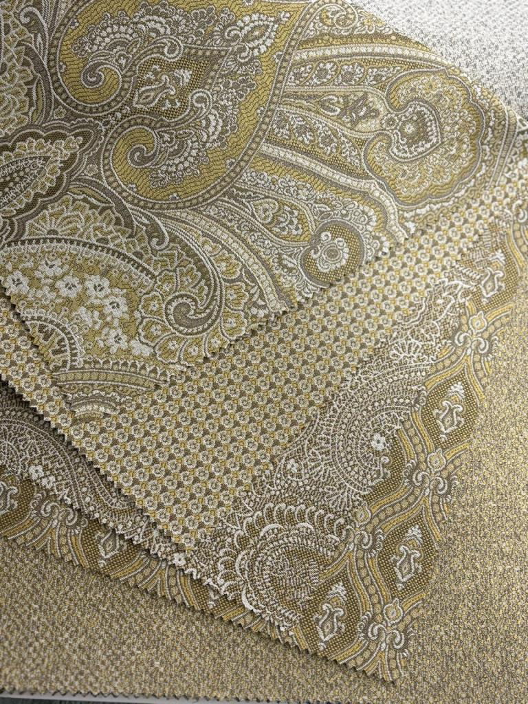 Fabrics with arabesque prints, very elaborate designs for lovers of the original, add style and majesty to any space. In its composition, we find: 50% polyester / 25% acrylic / 25% cotton, 280 cm wide, martindale 30,000 cycles.