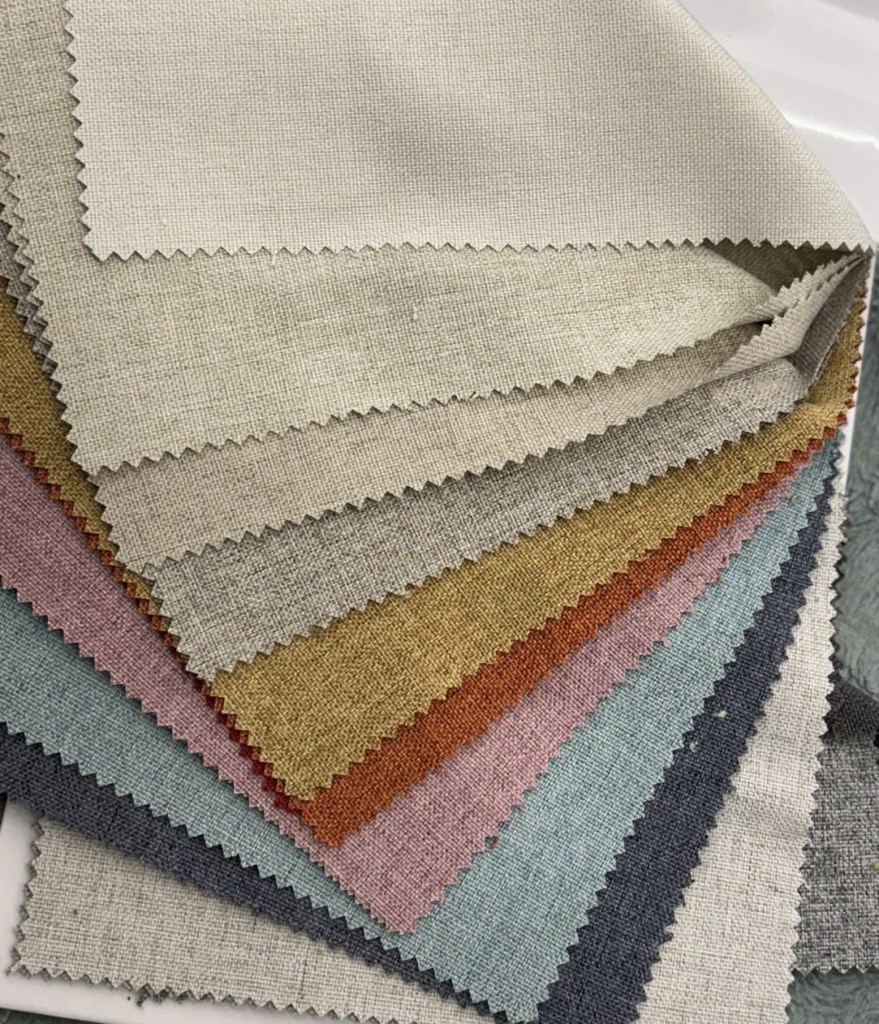 15% linen / 29% viscose / 56% cotton 280cm wide, martindale 35000 cycles 100% polyester 280cm wide, martindale 70000 cycles 67% viscose / 33% linen 280cm wide, martindale 45000 cycles 100% linen 290cm wide