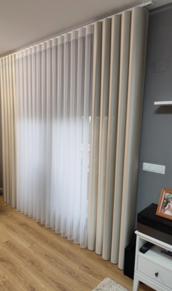Las verticales de onda perfecta es un diseño innovador que nos ofrece muchas ventajas, comenzando por su elegancia y perfección ideales para los gustos mas exigentes, luego ofrece las ventajas de cortina y visillo ya que las lamas son translucidas en el centro y nos permiten ver el exterior y mas gruesas en los laterales cuando giramos las lamas se convierte en cortina mas tupida sin visibilidad.